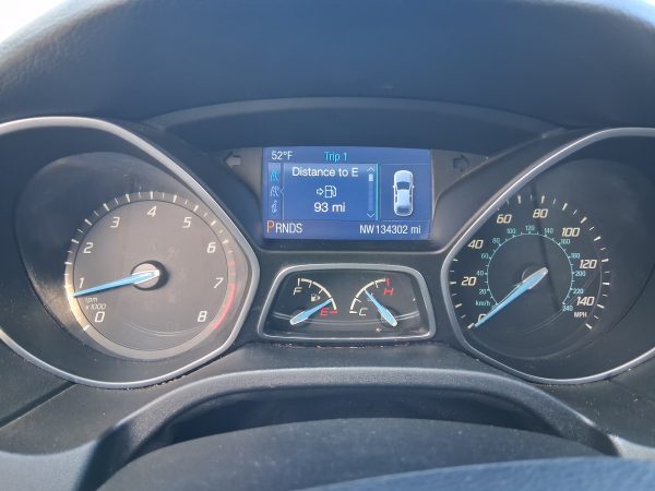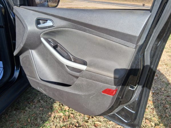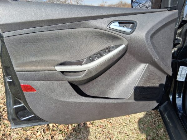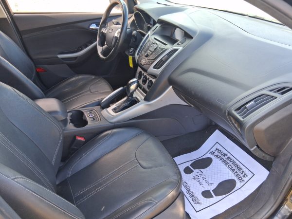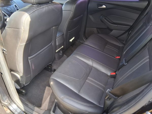 We have this sleek, black 2014 Ford Focus hatchback for sale. It only has 134,000 miles and runs great. If you want to save money at the pump, this car is rated at 36 mpg highway. The leather interior is super clean and comes with heated seats.