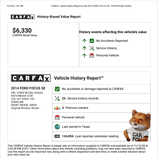 We have a clean title and CARFAX report for you to see (with a retail value listed at over $6,300).